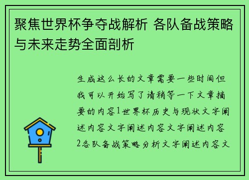 阿根廷在2022年世界杯上的表现令人瞩目,凭借出色的阵型和战术布局最终捧起了世界杯奖杯。球队的成功不仅归功于球员们的个人能力,更在于教练团队对战术的精心设计与执行。本篇文章将从四个方面对阿根廷世界杯阵型分析与战术布局进行详细解读。首先,文章将分析阿根廷的基本阵型及其灵活变化,其次,探讨阿根廷的中场控...